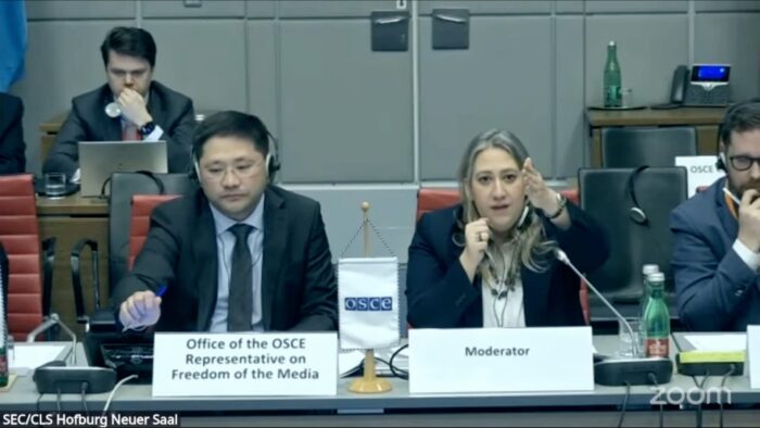 The meeting, attended by ambassadors, diplomats, and official representatives from 57 countries, discussed issues related to media freedom, the safety of journalists, and disinformation within the OSCE region.