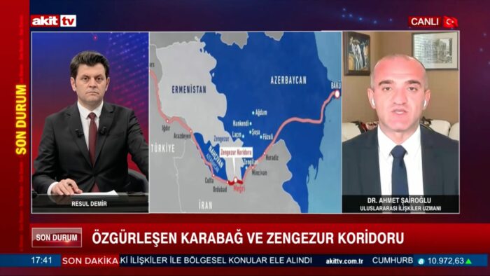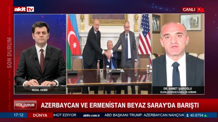 Political commentator Dr. Ahmad Shahidov, appearing as a guest on one of Turkey’s leading channels, Akit TV, shared comprehensive insights on both the historic Azerbaijan-Armenia peace meeting held at the White House on August 8 and the new geopolitical landscape emerging in the South Caucasus. Throughout the program, Shahidov placed special emphasis on the importance of the Zangezur Corridor, describing it as a strategic bridge not only for Azerbaijan but for the entire Turkic world.
