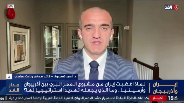 Egypt’s influential Al Ghad Television discussed the Zangezur Corridor and recent developments in the South Caucasus, particularly the peace agreement reached in Washington DC between Azerbaijan and Armenia. The program featured a debate between Iranian journalist and political commentator Said Shaverdi and Washington-based political analyst Dr. Ahmad Shahidov.