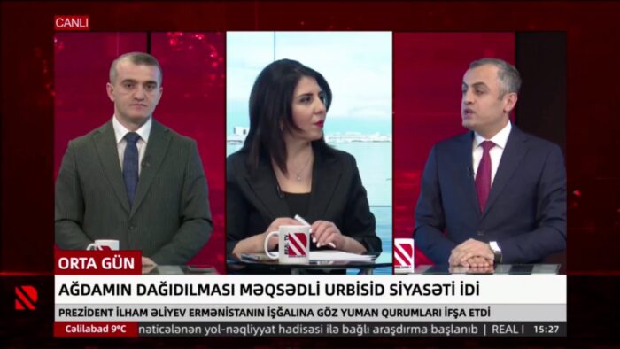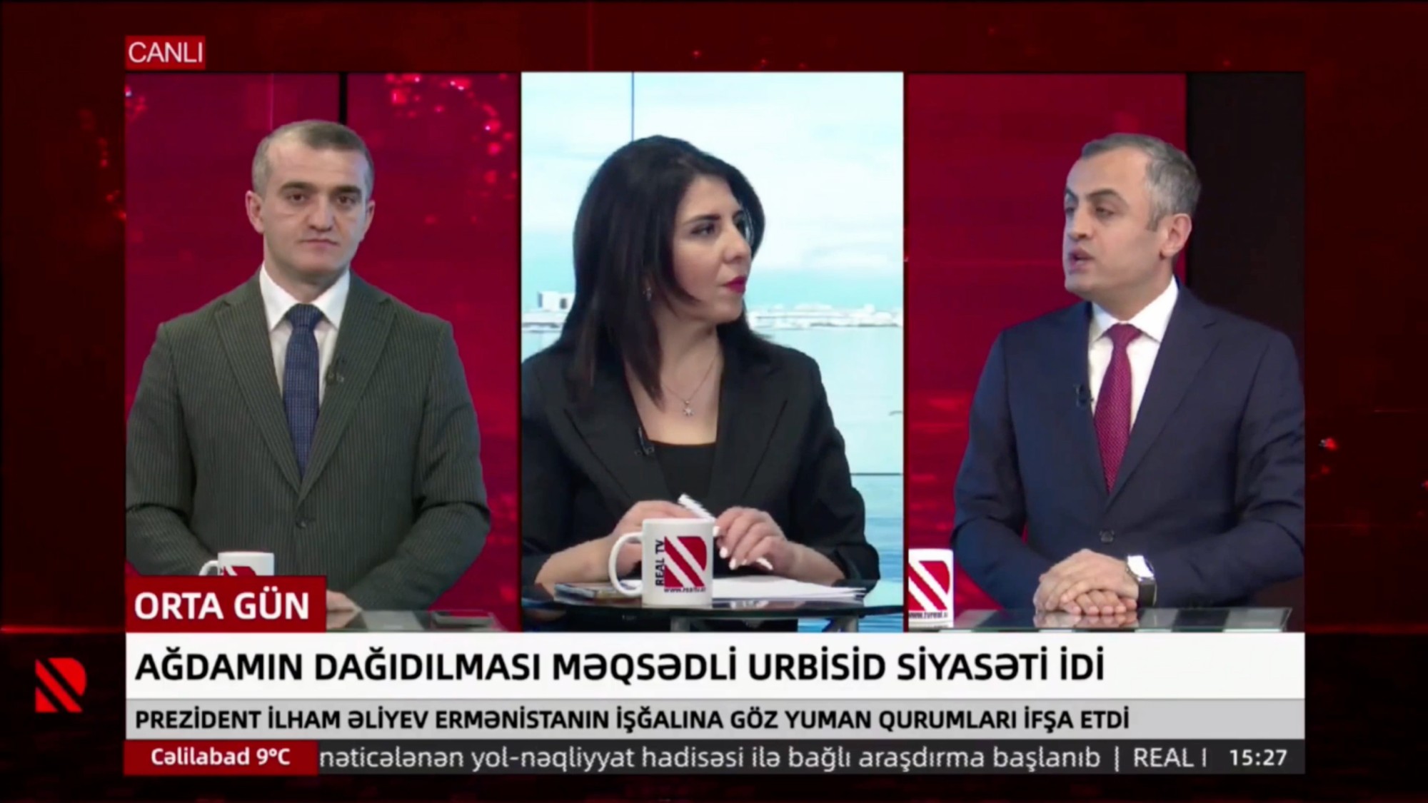During the “Orta Gün” program aired on REAL Television, recent political developments were discussed, including the informal CIS (Commonwealth of Independent States) summit held in St. Petersburg, President of Azerbaijan’s decision not to attend the meeting, as well as the key political messages delivered by President Ilham Aliyev during his visit to Aghdam on December 24. The discussion also focused on the first anniversary of the downing of an AZAL civilian aircraft in Russian airspace. The program featured Khayal Bashirov, Head of the Center for Political and Legal Studies, and political commentator Ahmad Shahidov as guests.