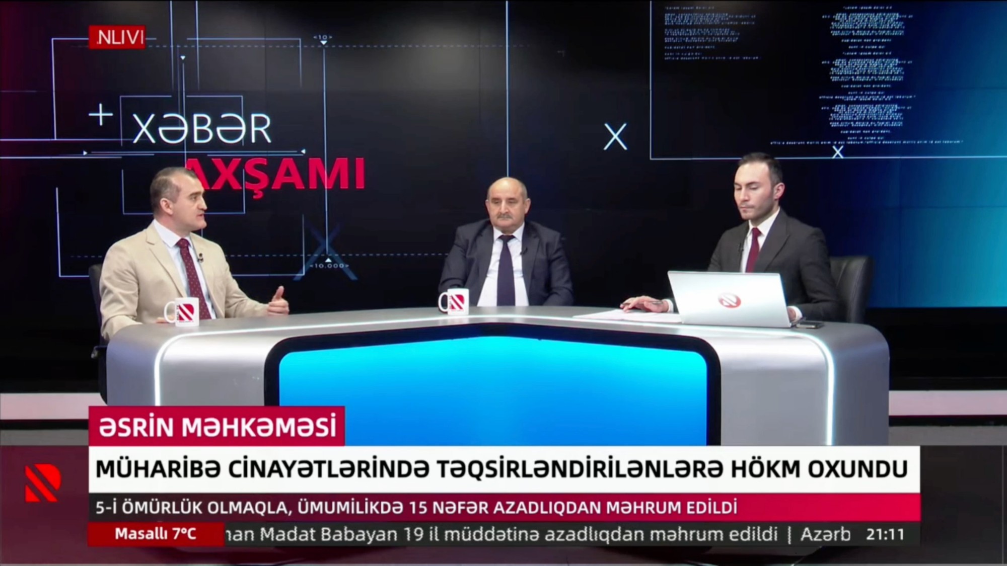The verdicts delivered against Armenian-origin defendants in a long-running court process in Baku were discussed in detail on REAL Television’s “Evening News” program. The guests of the program were Chingiz Ganizade, Chairman of the Democracy and Human Rights Committee and Doctor of Philosophy in Law, and human rights defender Ahmad Shahidov. The discussion focused on the Karabakh conflict, the new realities that emerged after the 2020 Patriotic War, and the political and legal dimensions of the court decisions.