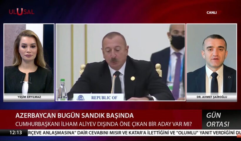 Dr. Ahmet Şairoğlu Azerbaycan’da yapılan cumhurbaşkanlığı seçimleriyle ilgili Ulusal Kanal’a konuştu … Dr. Ahmet Şairoğlu Azerbaycan’da yapılan cumhurbaşkanlığı seçimleriyle ilgili Ulusal Kanal’a konuştu