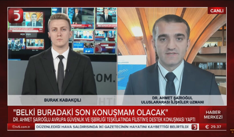 “Filistin’deki savaş Türkiye’nin arabuluculuk misyonuyla durdurulabilir” – Dr. Ahmet Şairoğlu TV5 kanalına konuştu … “Filistin’deki savaş Türkiye’nin arabuluculuk misyonuyla durdurulabilir” – Dr. Ahmet Şairoğlu TV5 kanalına konuştu