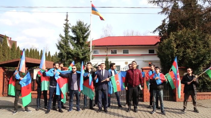 31 Mart Soyqırım Günü münasibətilə Ermənistanın Varşavadakı səfirliyi qarşısında etiraz aksiyası keçirilib