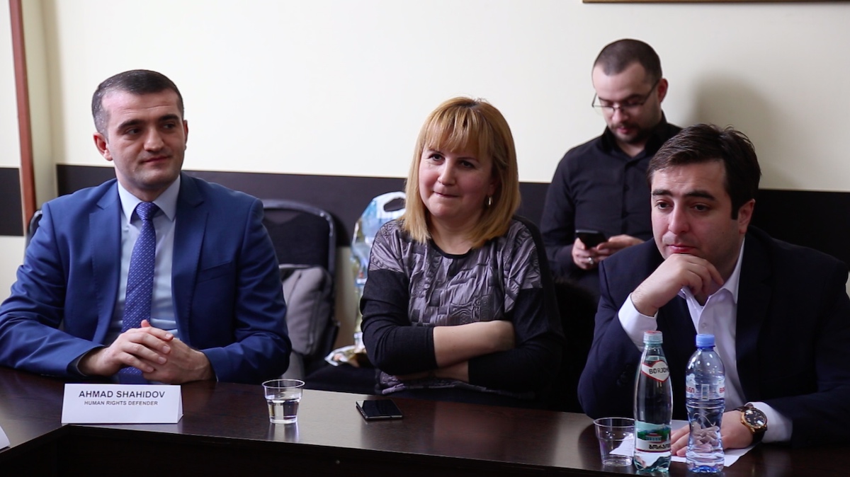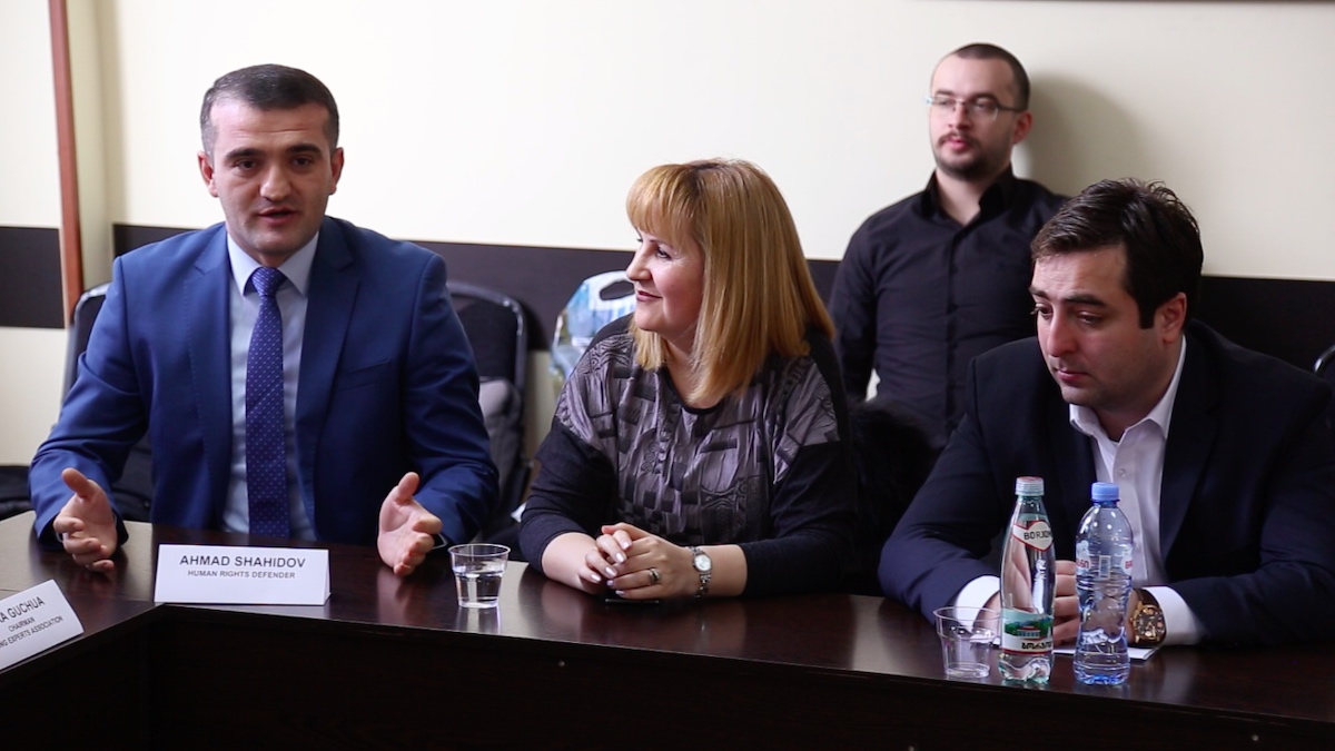 Azərbaycan Demokratiya və İnsan Haqları İnstitutunun rəhbəri, hüquq müdafiəçisi Əhməd Şahidov çıxışında hər iki xalqın ortaq tarixi, mədəniyyəti və gələcək hədəfləri barədə söz açıb, beynəlxalq platformalarda Azərbaycan və Gürcüstan nümayəndələrinin eyni mövqedən çıxış etdiyini və ölkələrin ərazi bütövlüyünün vacib şərt olduğunu diqqətə çatdırıb. Ötən ay Gürcüstanın Axalkalaki bölgəsində erməni cəlladı Mixail Avaqyana abidə ucaldılması məsələsinə toxunan hüquq müdafiəçisi bunu üçüncü qüvvələrin təxribat cəhdi kimi qiymətləndirib və Gürcüstan hökumətinin bu səhvi tezliklə aradan qaldıracağına inandığını bildirib.