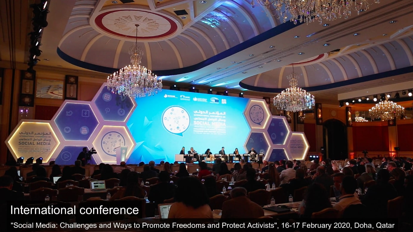 16-17 Fevral tarixlərində Qətər Milli İnsan Haqları Komitəsinin təşkilatçılığı ilə Doha şəhərində “Sosial media: Azadlıqları təşviq etmək və ictimai fəalları qorumaq – çətinliklər və həll yolları” adlı beynəlxalq konfransda dünyanın müxtəlif ölkələrindən gəlmiş ombudsmanlar, hüquq müdafiəçiləri, beynəlxalq humanitar insan haqları təşkilatlarının rəhbərləri və ekspertlər sosial şəbəkələrdə insan haqlarının qorunması məsələsini müzakirə ediblər.