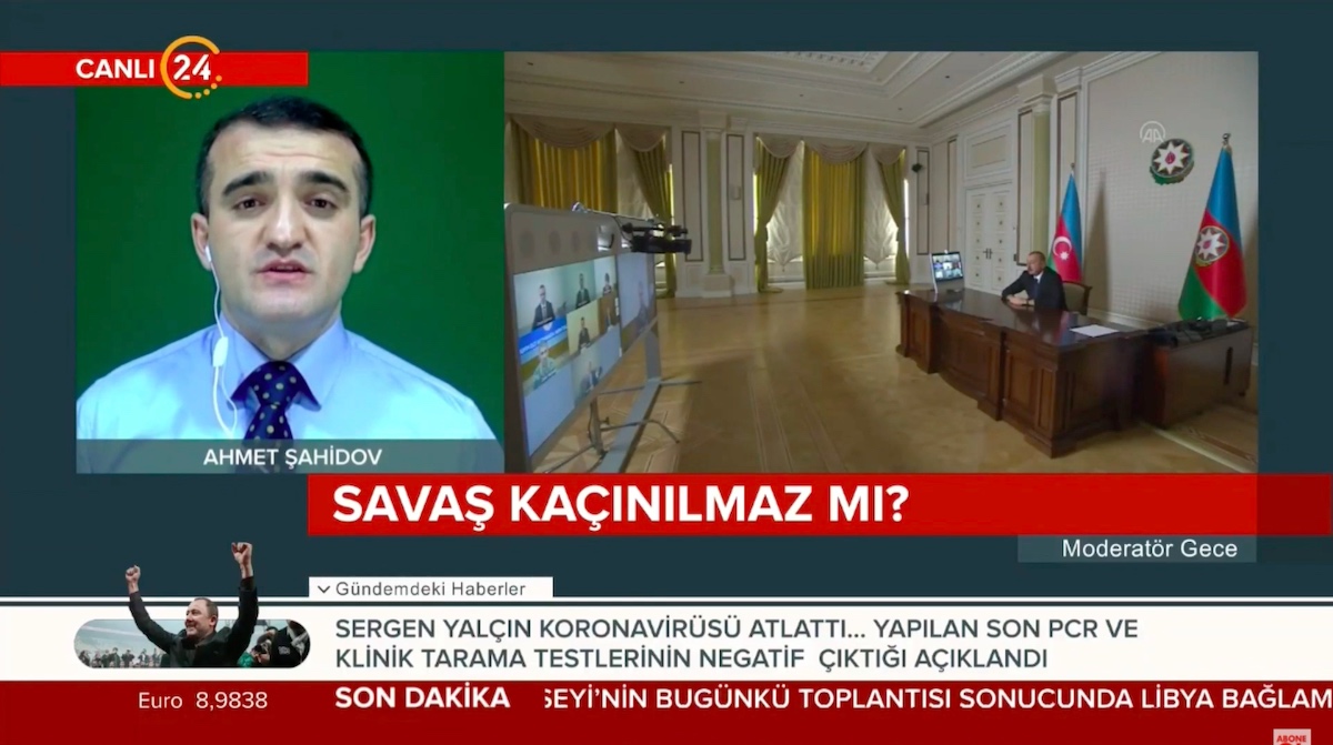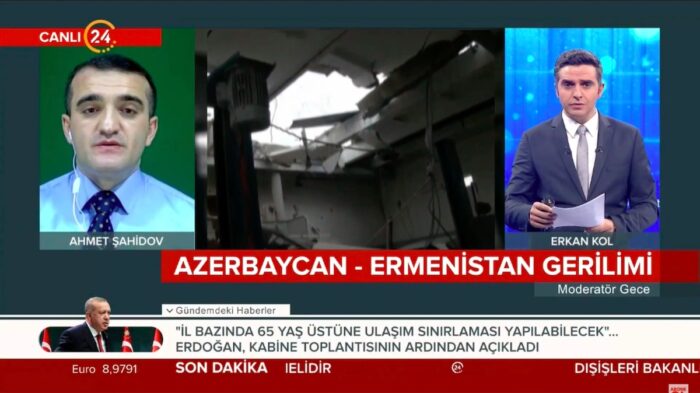 Türkiyənin Kanal 24 Televiziyasına danışan Azərbaycan Demokratiya və İnsan Haqları İnstitutunun rəhbəri, hüquq müdafiəçisi Əhməd Şahidov “Moderator Gecə” proqramında Erkan Kolun suallarını cavablandırıb və cəbhə xəttindəki son durumu dəyərləndirib.
