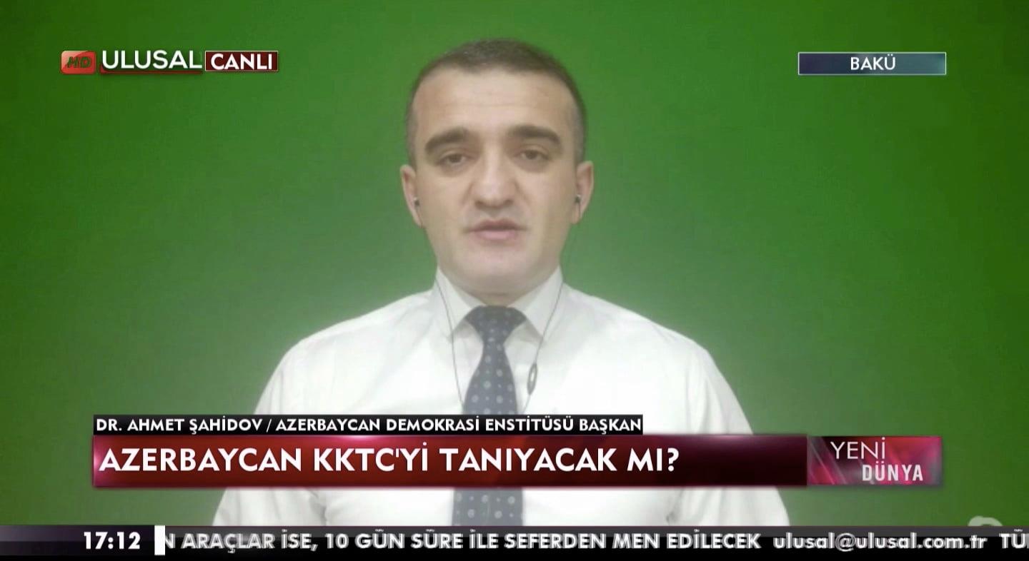 Türkiyənin Ulusal Kanal Televiziyasında “Yeni Dünya” proqramında aparıcı Kıvanç Özdalın suallarını cavablandıran Azərbaycan Demokratiya və İnsan Haqları İnstitutunun rəhbəri Əhməd Şahidov ŞKTC-nin yaxın vaxtlarda tanına biləcəyindən söz açıb. Şimali Kiprin tanınması həm ölkə mediasında, həm də sosial şəbəkələrdə ən çox müzakirə olunan məsələlər sırasındadır.