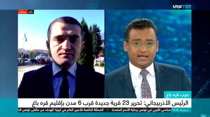 TRT Arabia Televiziyasına müsahibə verən Azərbaycan Demokratiya və İnsan Haqları İnstitutunun rəhbəri, hüquq müdafiəçisi Əhməd Şahidov bildirib ki, Ermənistan bugün çıxılmaz bir durumdadır və artıq öz məğlubiyyəti ilə barışıb: “Danışıqlara başlamaq üçün Azərbaycan tərəfinin şərtləri dəyişilməz olaraq qalır. Ermənistan hökuməti rəsmi surətdə Azərbaycanın ərazi bütövlüyünü tanımalıdır və öz qoşunlarını Dağlıq Qarabağ və ətraf ərazilərdən çıxarmalıdır. Yalnız bundan sonra sülh danışıqları mümkün ola bilər. Əks halda müharibə davam edəcək və Azərbaycan tam qətiyyətli şəkildə öz torpaqlarını işğaldan azad etməkdə qərarlıdır. Bu, Azərbaycanın suveren hüququdur və Azərbaycan sonadək mübarizə aparacaq ki, beynəlxalq səviyyədə tanınmış sərhədlərinin təhlükəsizliyini təmin etsin.”