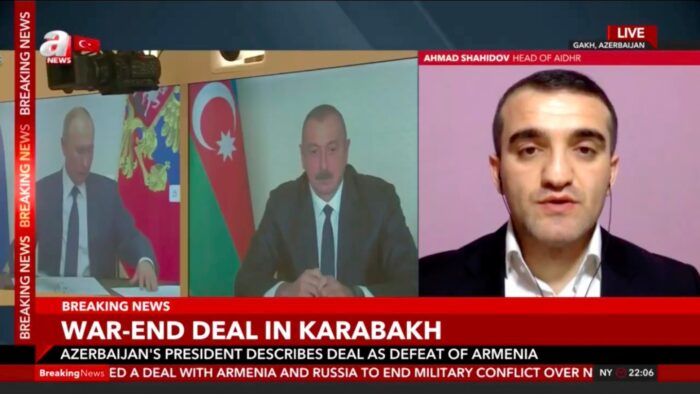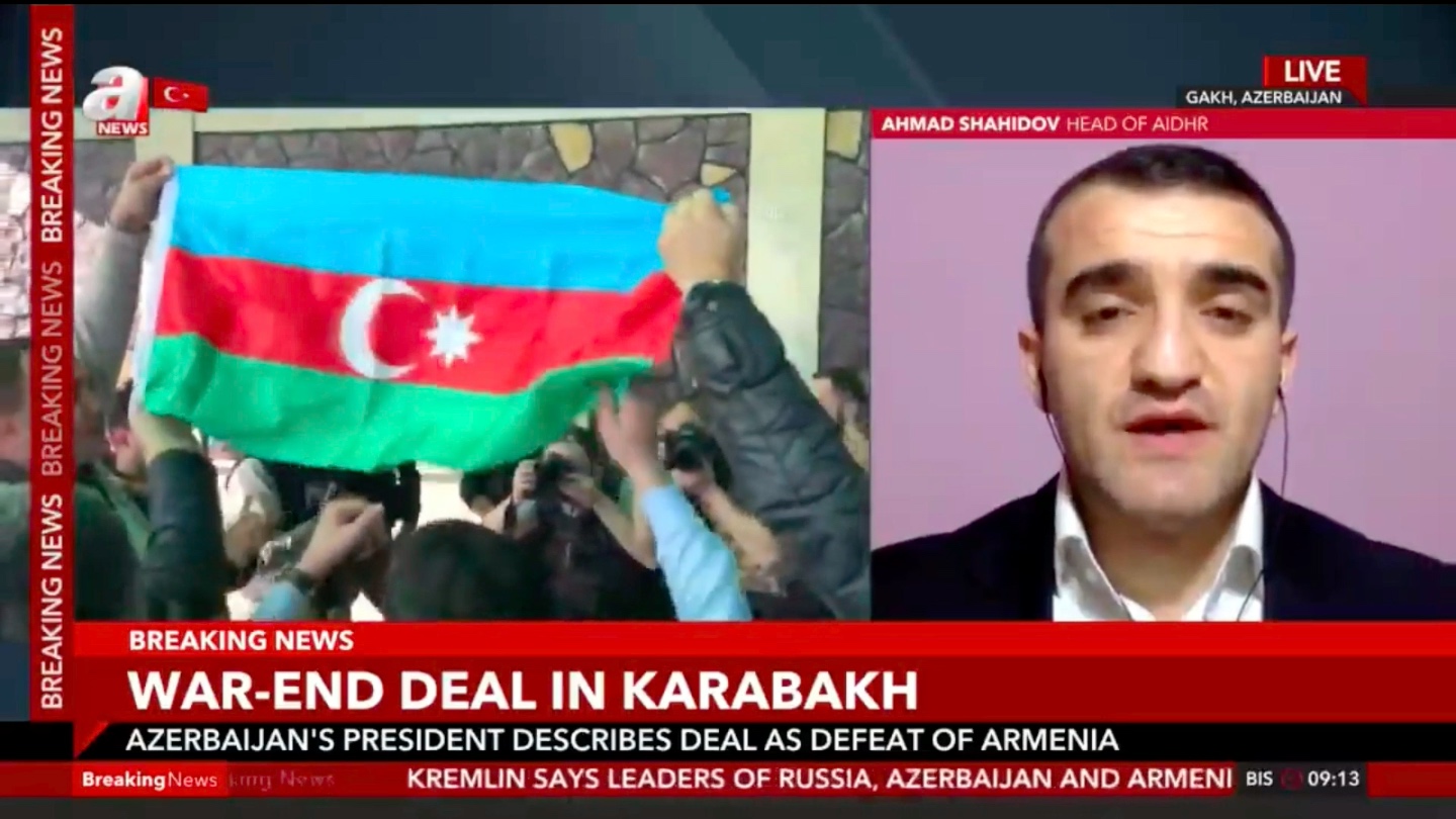 Mövzu ilə bağlı ANews Televiziyasına müsahibə verən Azərbaycan Demokratiya və İnsan Haqları İnstitutunun rəhbəri, hüquq müdafiəçisi Əhməd Şahidov bildirdi ki, bugün imzalanan müqavilə regionda uzun müddətli sülhün bərqərar olması məqsədi daşıyır: “Rusiyanın bu münaqişədə həlledici rol oynayacağı gözlənilən idi. Düşünürəm ki, Türkiyə də gələcək danışıqlarda yaxından iştirak etməlidir. Bu müqavilə Azərbaycan tərəfinin uzun illər ərzində irəli sürdüyü şərtlərin həyata keçməsidir. Əfsuslar olsun ki, Ermənistan indiyə kimi beynəlxalq hüququn tələblərini yerinə yetirməyi və sülh danışıqlarına başlamağı rədd edirdi. Nəhayət ki, bugün Nikol Paşinyan hökuməti reallıqları qəbul etməyə məcbur edildi.”