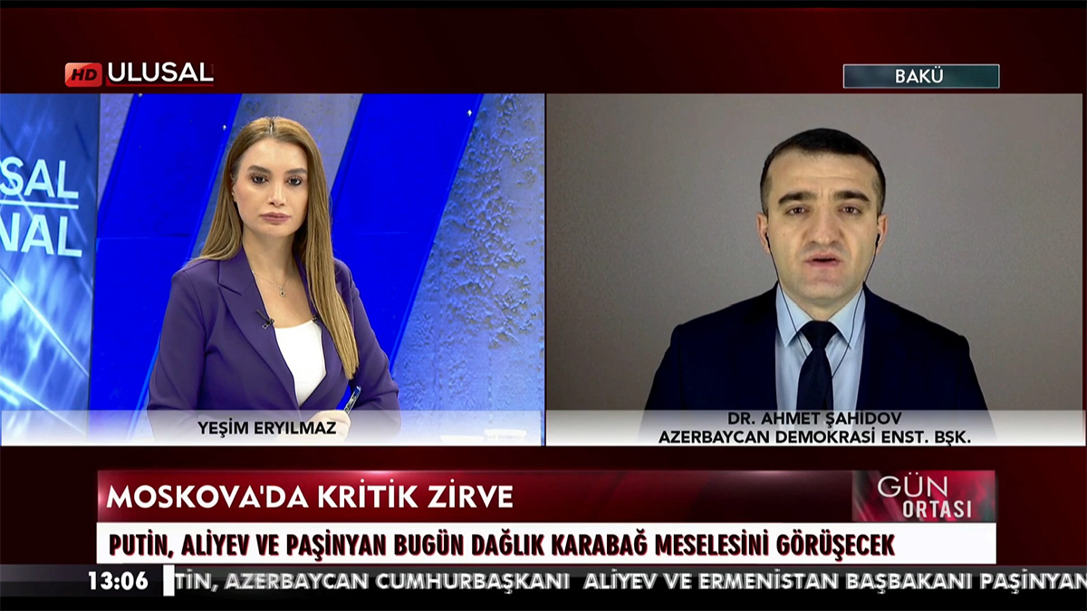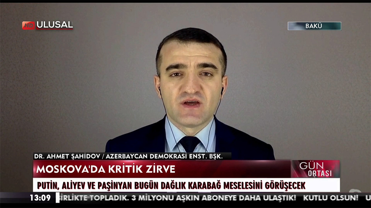 Bu barədə Türkiyənin Ulusal Kanal Televiziyasına müsahibə verən Azərbaycan Demokratiya və İnsan Haqları İnstitutunun rəhbəri, hüquq müdafiəçisi Əhməd Şahidov Azərbaycan, Ermənistan və Rusiya liderlərinin Moskvadakı görüşünü yüksək dəyərləndirib və bölgənin iqtisadi blokadadan çıxarılması baxımından vacib olduğunu qeyd edib: “Bu, vacib görüşdür və böyük nailiyyətdir. Bu görüş bütün bu illər ərzində bağlı halda qalmış, Azərbaycan və Türkiyə ilə ticarət əlaqələri olmayan, iqtisadiyyatı böyük ölçüdə iflic olan Ermənistana da fayda gətirəcək.”