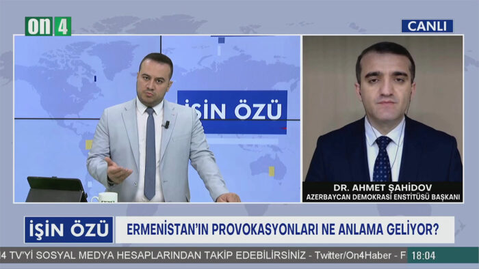 Erməni tərəfinin sərhəddə bucür təxribatlara əl atmasının arxasında nə dayanır? Bu suala cavab tapmaq üçün Türkiyənin ON4 Televiziyasının “İşin özü” proqramında danışan Azərbaycan Demokratiya və İnsan Haqları İnstitutunun rəhbəri, hüquq müdafiəçisi Əhməd Şahidov bölgədəki son durum barədə məlumat verib və aparıcı Muhammed Acarın suallarını cavablandırıb.