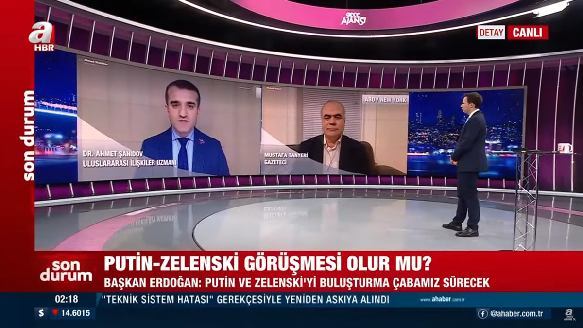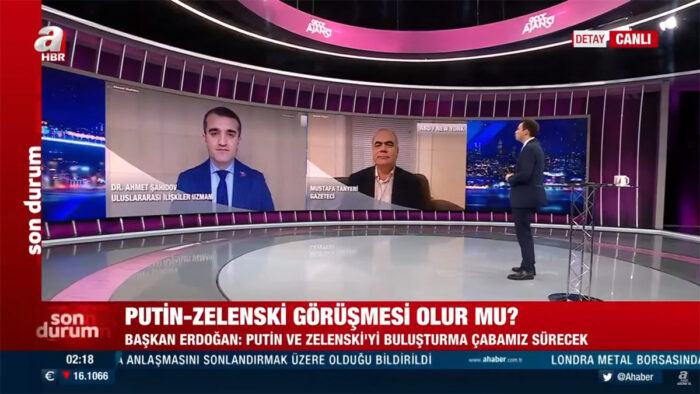 #AHaber’in “Gece Ajansı” programında #Zelensky-#Putin görüşmesi olasılığı ve bu savaşın barışçıl bir şekilde sona ermesi fırsatları tartışıldı. Uluslararası ilişkiler uzmanı Dr. Ahmet Şahidov ve gazeteci Mustafa Tanyeri, sunucu Gökhan Kurt’un sorularını yanıtladı.