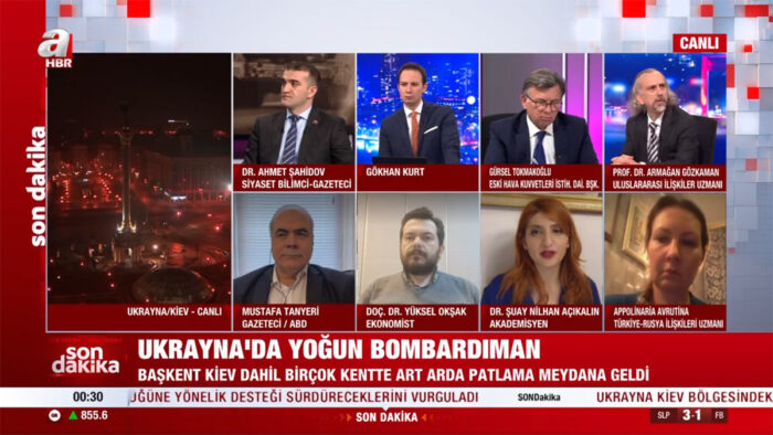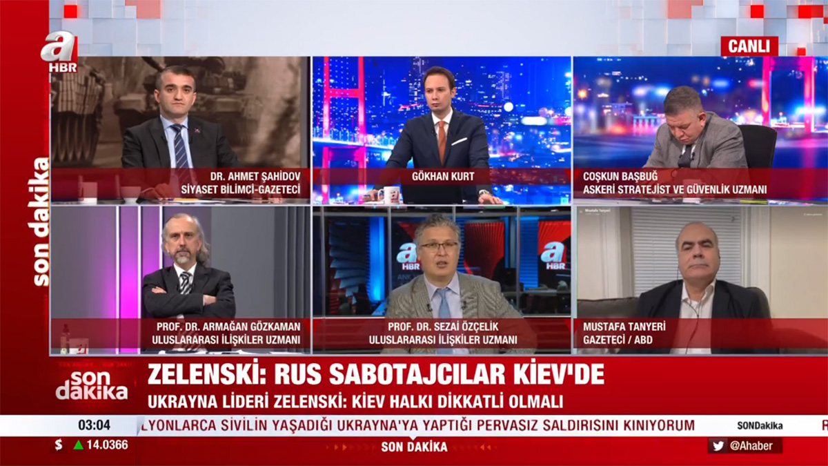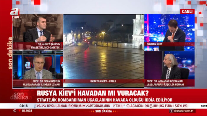 Ukrayna savaşı yeni dünya düzeninin başlangıcı mı? – AHaber’in canlı yayınında uzmanlar konuşuyor Əhməd Şahidov Şubat 25, 2022 No Comments Rusya-Ukrayna savaşı AHaber`in canlı yayımında tartışıldı. Beş saat süren gergin tartışmaya azerbaycanlı siyaset bilimci-gazeteci Dr. Ahmet Şahidov da katıldı. Bunu paylaş:FacebookTwitterLinkedInTelegramWhatsAppE-posta