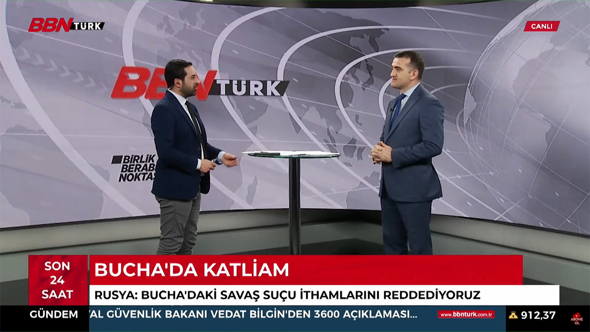 Türkiye’yi ziyaret eden Azerbaycan Demokrasi ve İnsan Hakları Enstitüsü Başkanı Dr. Ahmet Şahidov, BBN Türk Televizyonu`nda “Son 24 Saat” programına konuk oldu. Sunucu Emre Diner’in sorularını yanıtlayan Dr. Ahmet Şahidov, Ukrayna-Rusya savaşının 40. gününü ve Türkiye’nin savaşı sona erdirmek için attığı adımları ve Şuşa’nın Türk Dünyası Kültür Başkenti ilan edilmesini değerlendirdi.