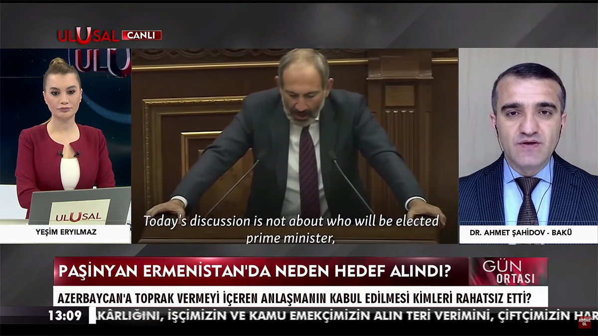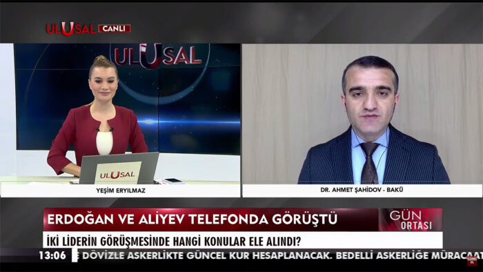 Azerbaycan Demokrasi ve İnsan Hakları Enstitüsü başkanı Ahmet Şahidov, Ulusal Kanal’ın “Gün Ortası” programında Yeşim Eryılmaz’ın sorularını yanıtladı.