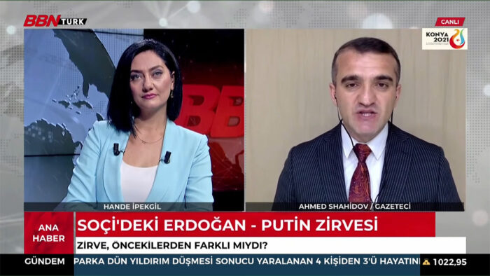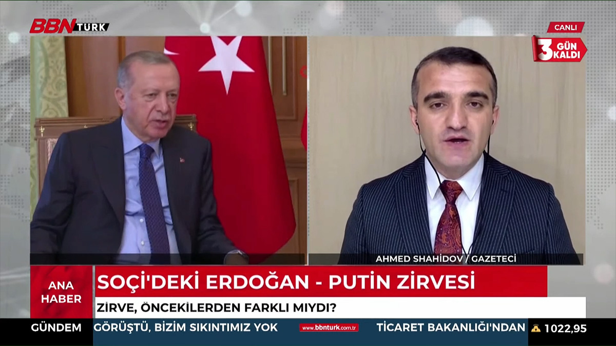 BBNTürk kanalının “Ana Haber” programında konuyla ilgili konuşan gazeteci ve yazar Dr. Ahmet Şahidov, Soçi görüşmesinin Türkiye-Rusya ilişkilerinin yanı sıra Suriye, Ukrayna, Karabağ’daki süreçlerin hızlanmasını etkileyeceğini kaydetti.