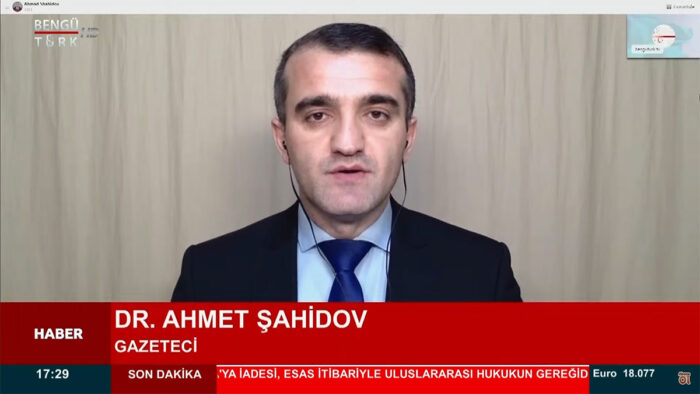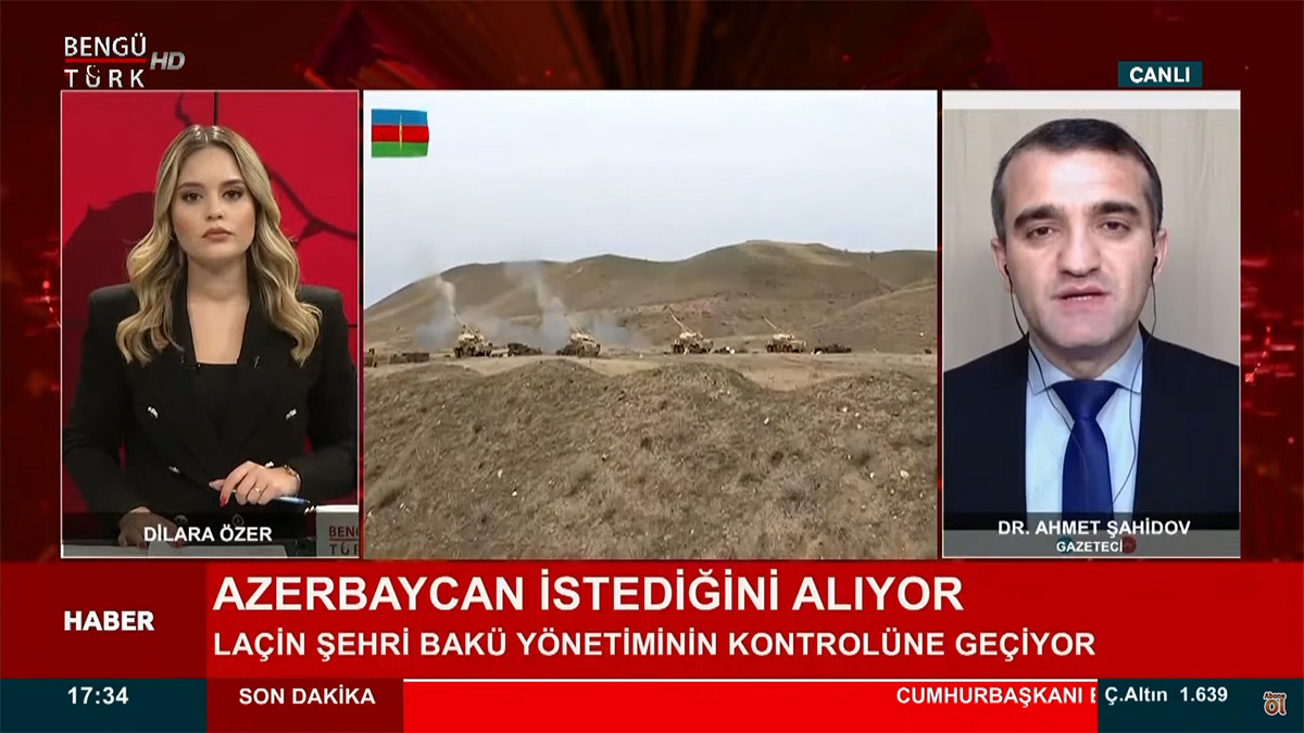 BengüTürk kanalında Azerbaycan gündemini değerlendiren gazeteci-yazar Dr. Ahmet Şahidov, sunucu Dilara Özer’in sorularını yanıtladı.
