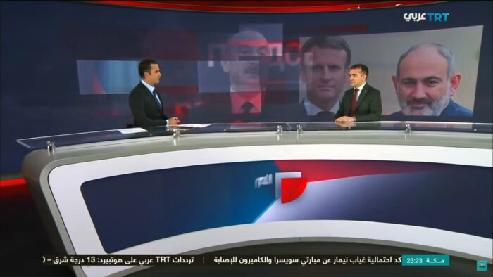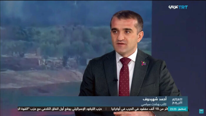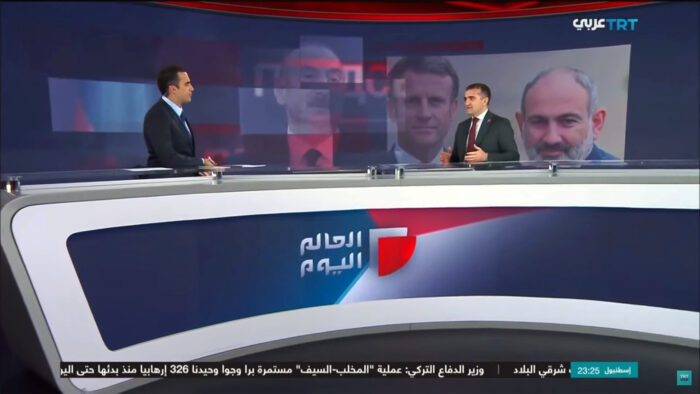 TRT Arabia kanalının canlı yayınında konuşan uluslararası ilişkiler uzmanı Dr. Ahmet Şahidov, Azerbaycan-Ermenistan ilişkilerini ve Fransa’nın bu alandaki rolünü değerlendirdi.