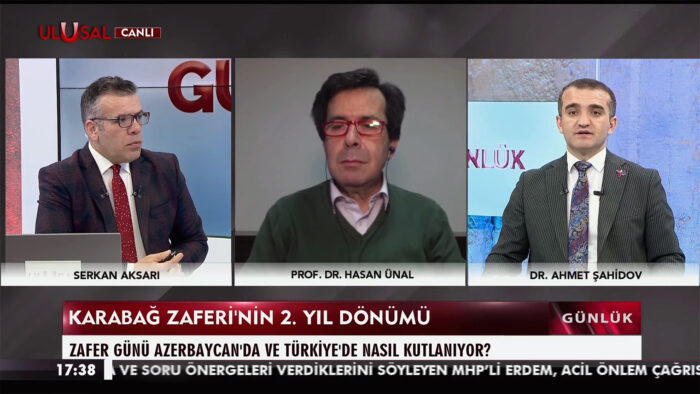 Konuyla ilgili Ulusal Kanal`da konuşan Professor Dr. Hasan Ünal ve gazeteci-yazar Dr. Ahmet Şahidov Azerbaycan halkının Karabağ mücadelesini anlattı ve sunucu Serkan Aksarı`nın sorularını yanıtladı.