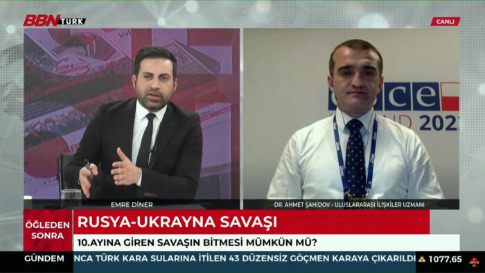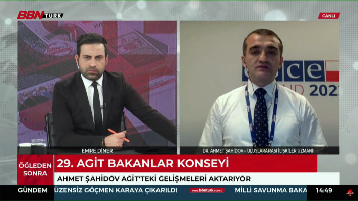 AGİT Bakanlar Konseyi Toplantısına katılan Uluslararası İlişkiler Uzmanı Dr. Ahmet Shahidov, BBNTürk kanalının “Öğleden Sonra” programına Lodz’dan bir değerlendirme yaptı.