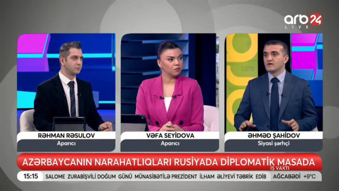 Konuyla ilgili ARB24 Televizyonu’nun “Çalışma Zamanı” programına konuk olan siyaset bilimci Dr. Ahmet Şahidov, Ermenistan’ın zaten tüm uluslararası platformlarda izole edildiğini ve Azerbaycan’ın Rusya-Ermenistan ilişkilerinin bozulmasının arka planında diplomatik cephede kazanç elde ettiğini söyledi.