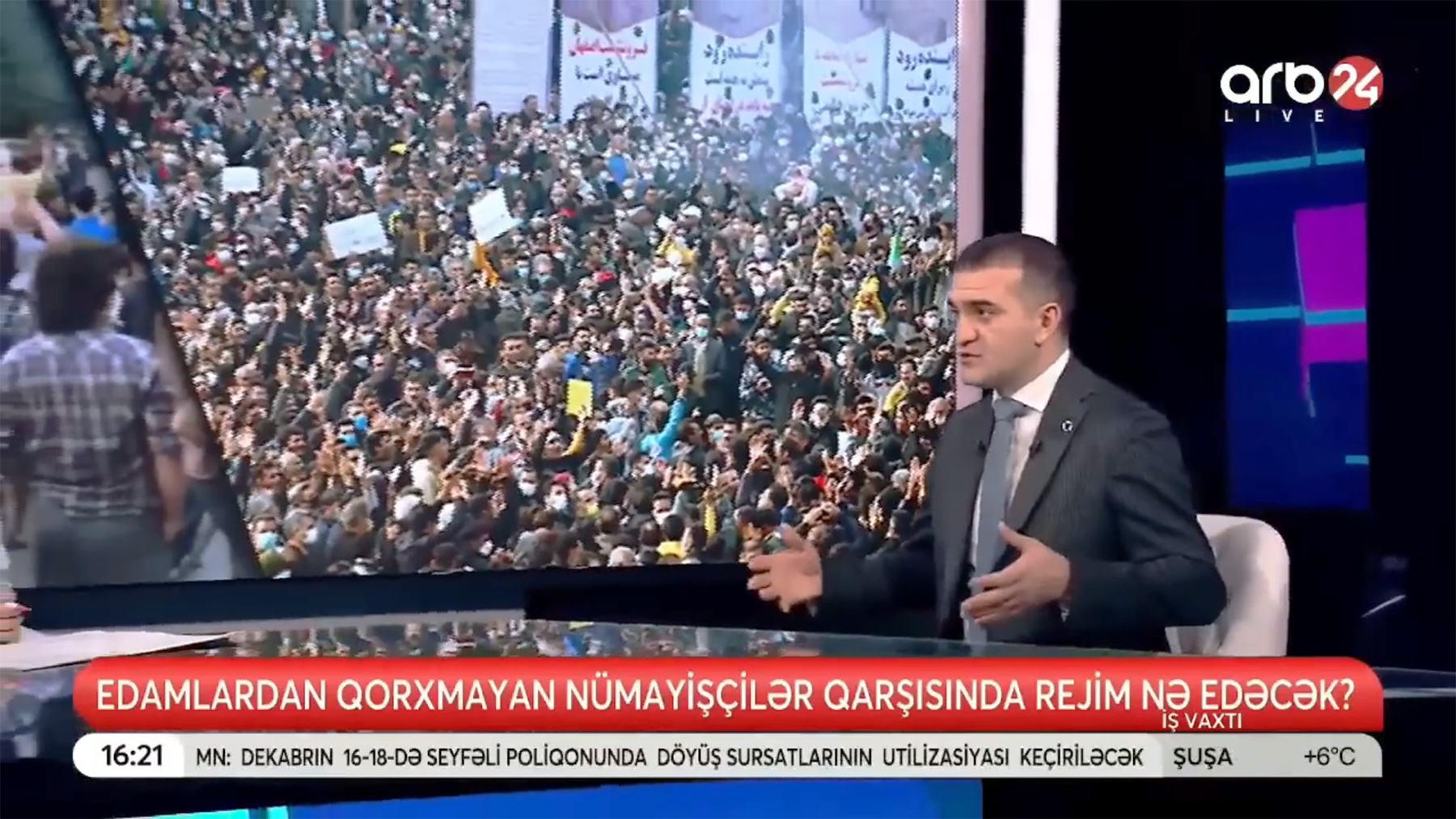 Konuyla ilgili ARB24 Televizyonu’nun “Çalışma Zamanı” programında konuşan siyaset bilimci Dr. Ahmet Şahidov, İran’da yaşananların Tahran’ın iç meselesi olmadığını ve Güney Azerbaycan’da yaşananların resmi Bakü tarafından yakından takip edildiğini söyledi.