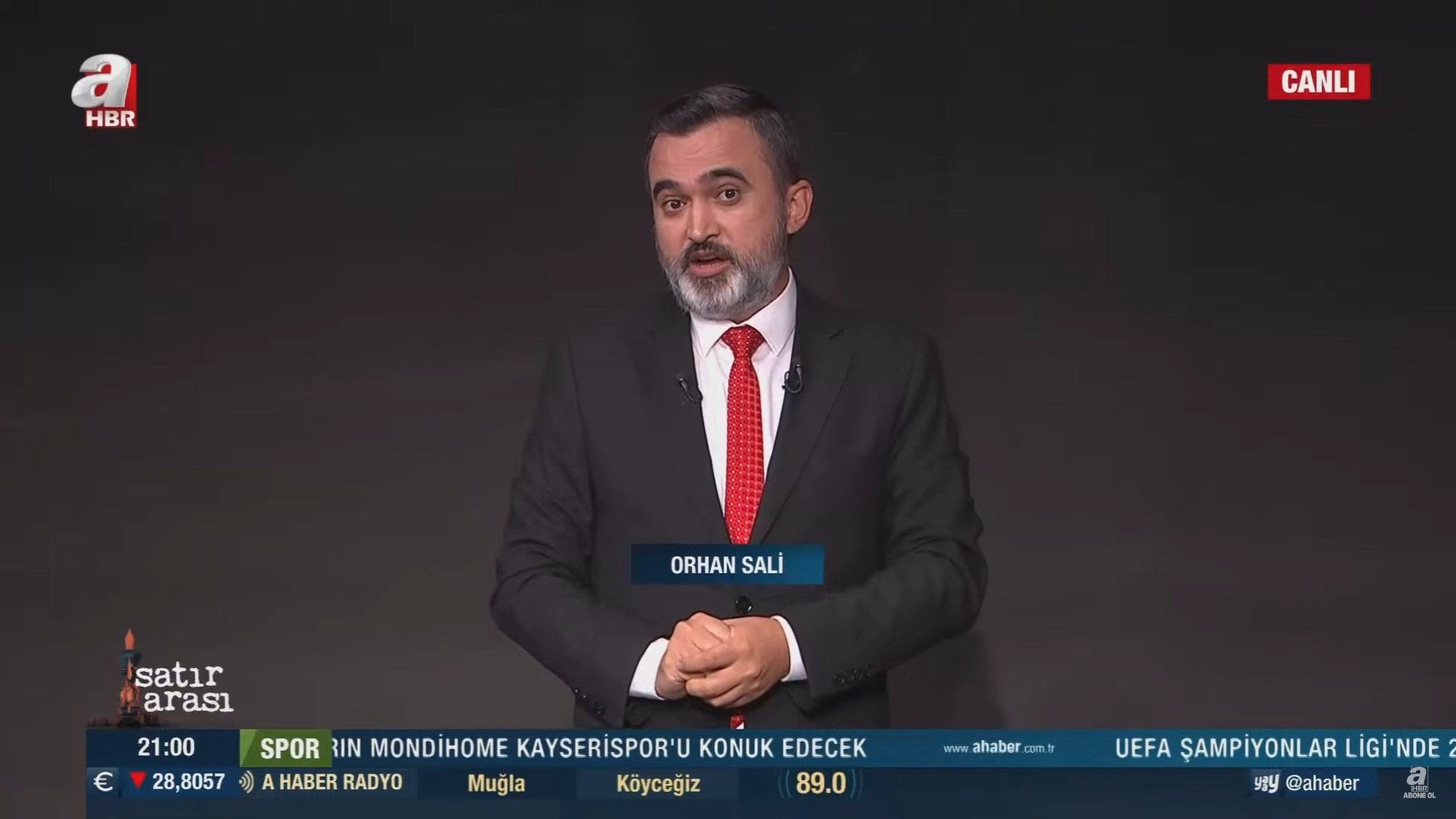 A Haber’de canlı yayınlanan, moderatörlüğünü Orhan Sali’nin yaptığı, “Satır Arası” 02.09.2023 tarihli yayınında, konuklar Star Gazetesi Yazarı Stratejist Coşkun Başbuğ, Süper Haber Yazarı Ceyhun Bozkurt, Uluslararası İlişkiler Uzmanı Dr. Ahmet Şairoğlu ve Türkiye Gazetesi Yazarı Yusuf Alabarda ile gündemdeki sıcak gelişmeler masaya yatırıldı.