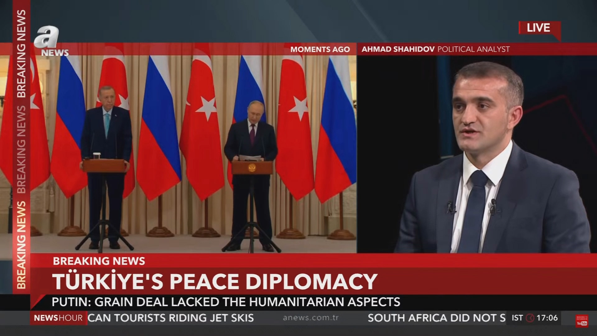 Siyaset bilimci Dr. Ahmet Şairoğlu, ANews kanalına verdiği röportajda Soçi zirvesinin Türkiye-Rusya ilişkilerine etkileri, dünya tahıl krizi ve Ukrayna’daki savaşa ilişkin değerlendirmelerde bulundu.