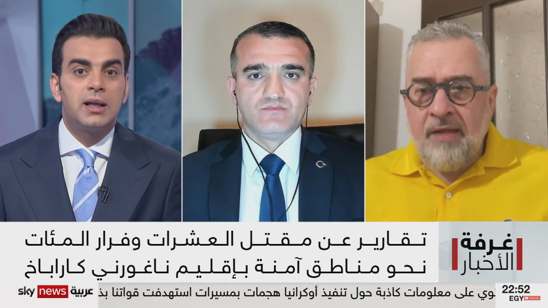 Konuyla ilgili Sky News Arabia kanalında yoğun bir tartışma daha yaşandı. Azerbaycanlı insan hakları savunucusu Dr. Ahmet Şairoğlu ile ermeni siyasi yorumcu Sako Arian, Karabağ’daki ermenilerin hakları ve yükümlülükleri konusunda görüş alışverişinde bulundu.