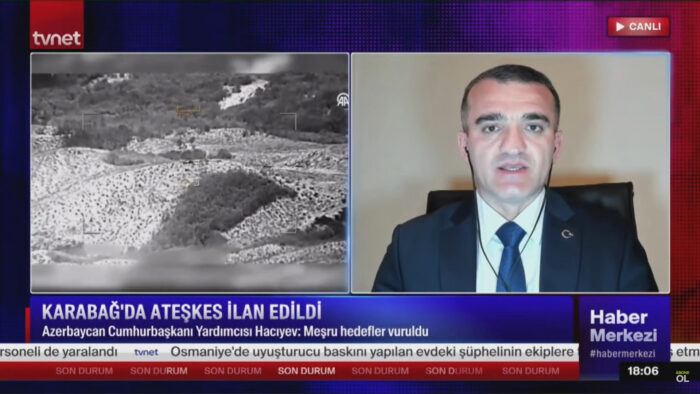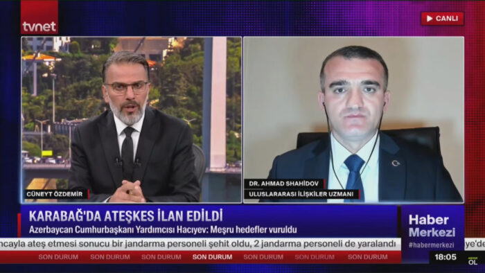 TVNET kanalında yayınlanan “Haber Merkezi” programında gazeteci Cüneyit Özdemir`in sorularını yanıtlayan uluslararası ilişkiler uzmanı Dr. Ahmet Şairoğlu, Azerbaycan Ordusu`nun Karabağ`da 23 saat süren başarılı askeri operasyonlarının ardından bölgedeki ayrılıkçı rejimin teslim olduğunu ve bununla da Azerbaycanın Zafer kazandığını söyledi.