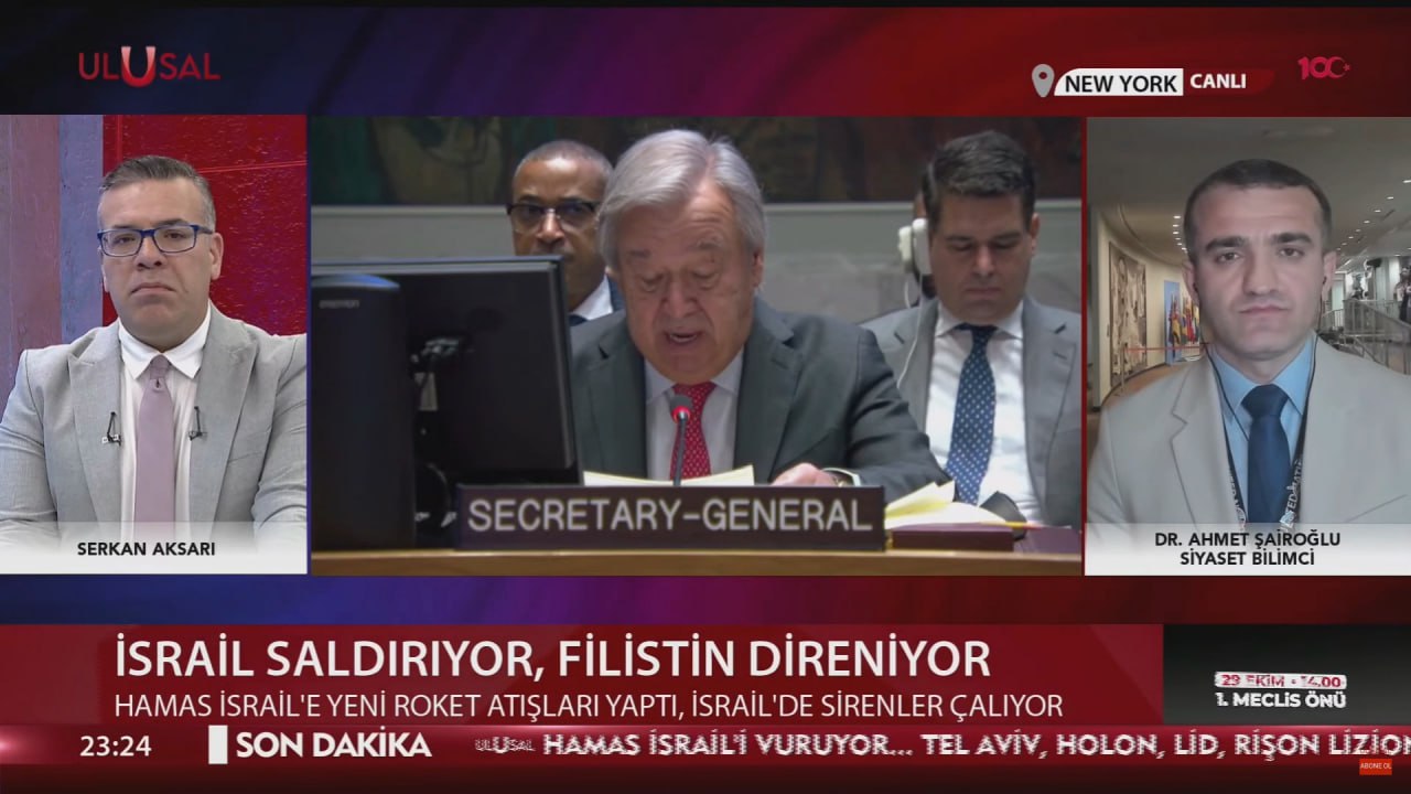 Şu anda New York’ta bulunan siyaset bilimci Dr. Ahmet Şairoğlu, Ulusal Kanal Televizyonu’na verdiği röportajda BM’de yürütülen tartışmalara ilişkin bilgi verdi.