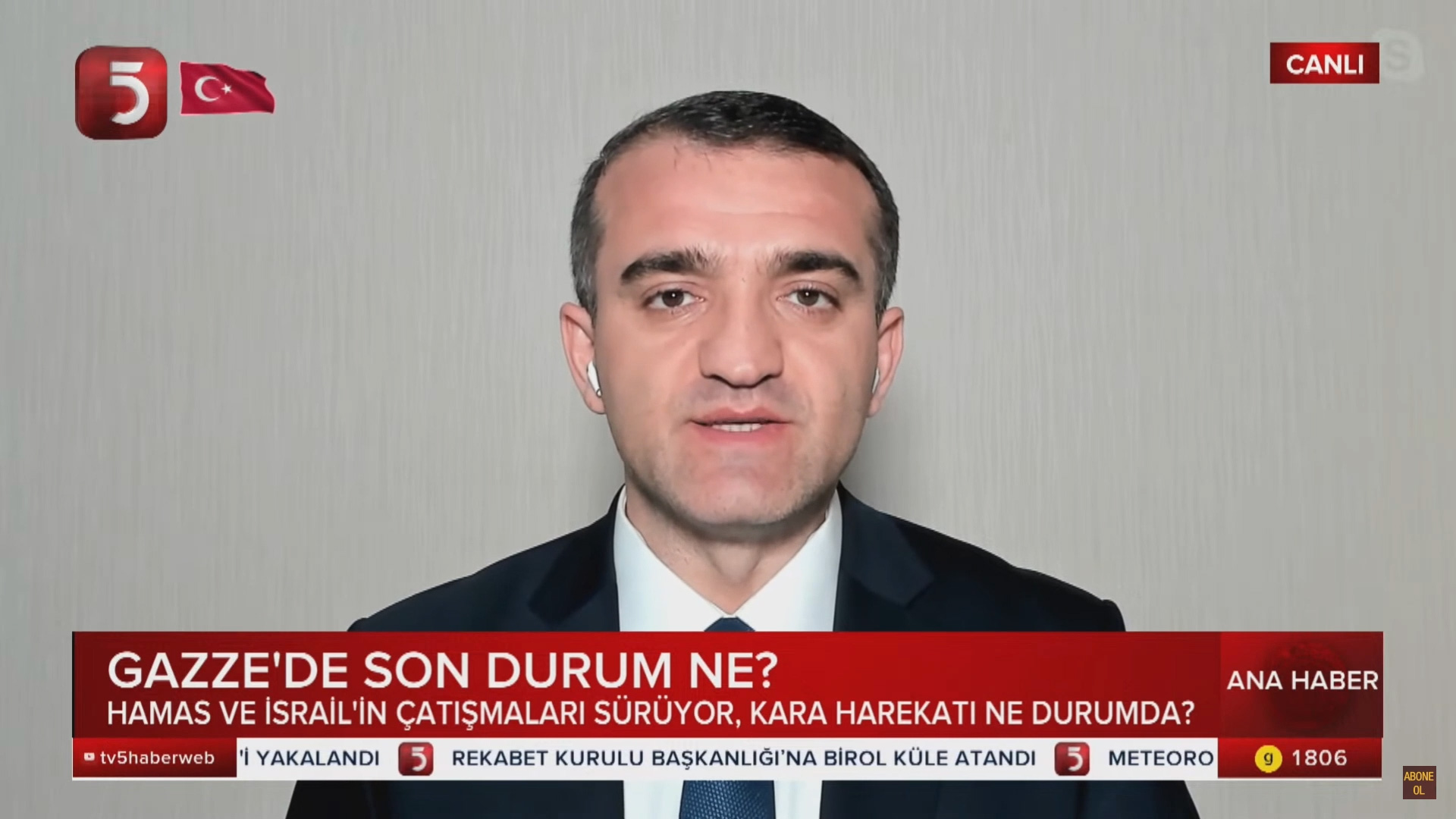 Konuyla ilgili TV5 kanalına konuşan siyaset bilimci Dr. Ahmet Şairoğlu, Türkiye’nin arabuluculuk misyonuyla Filistin’deki savaşın durdurulması ve sivil halka insani yardım sağlanmasının olanaklarını değerlendirdi.