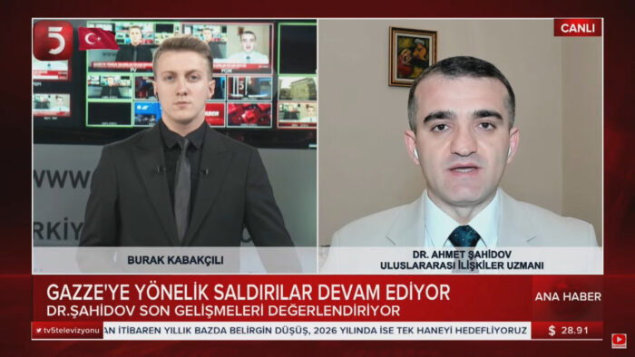 Konuyla ilgili TV5 kanalına yorum yapan siyaset bilimci Dr. Ahmet Şairoğlu, bölgede barış ve diyalogun tesis edilmesi için iki devletin varlığının gerekli olduğunu değerlendirdi: “Azerbaycan, Filistin meselesinde her zaman dayanışma içinde olmuş ve bu meselenin BM’nin ilgili kararları doğrultusunda iki devlet ilkesine dayalı olarak çözümünü desteklemektedir.”