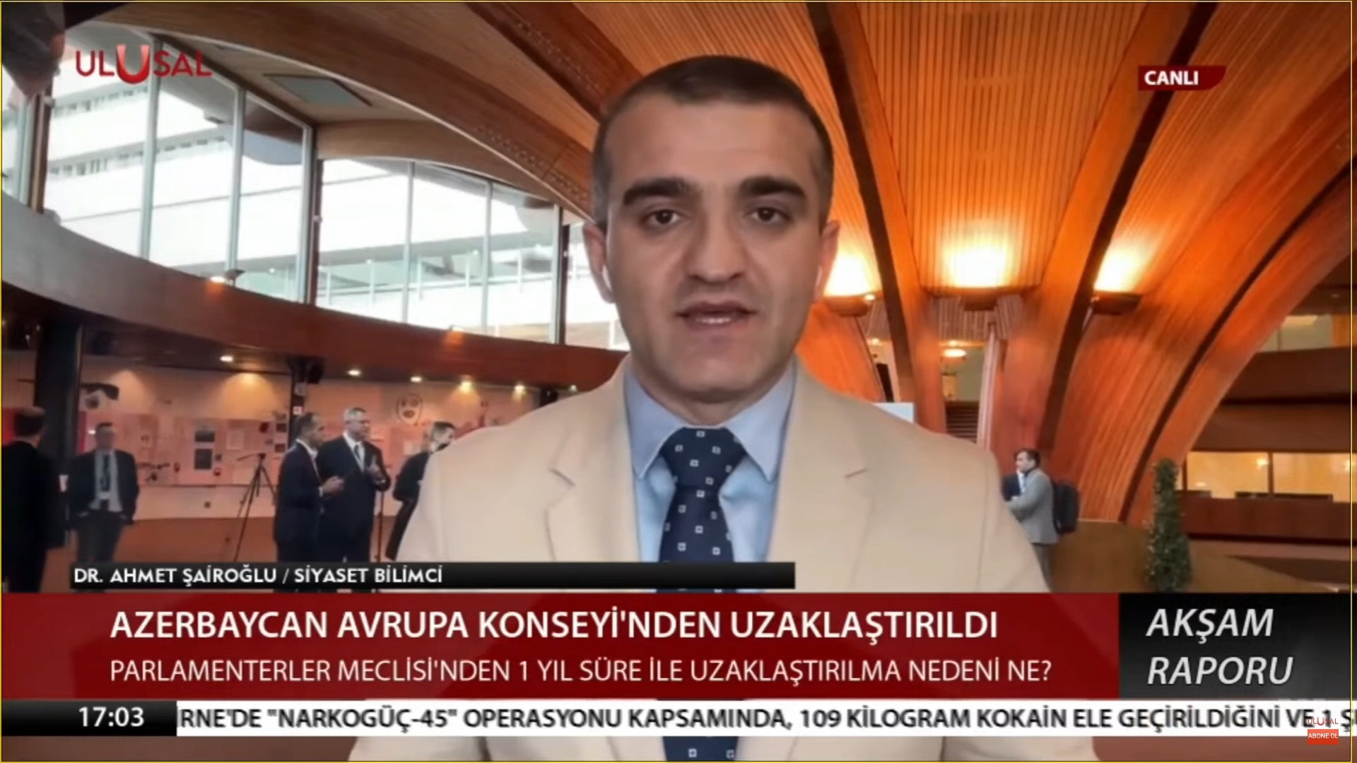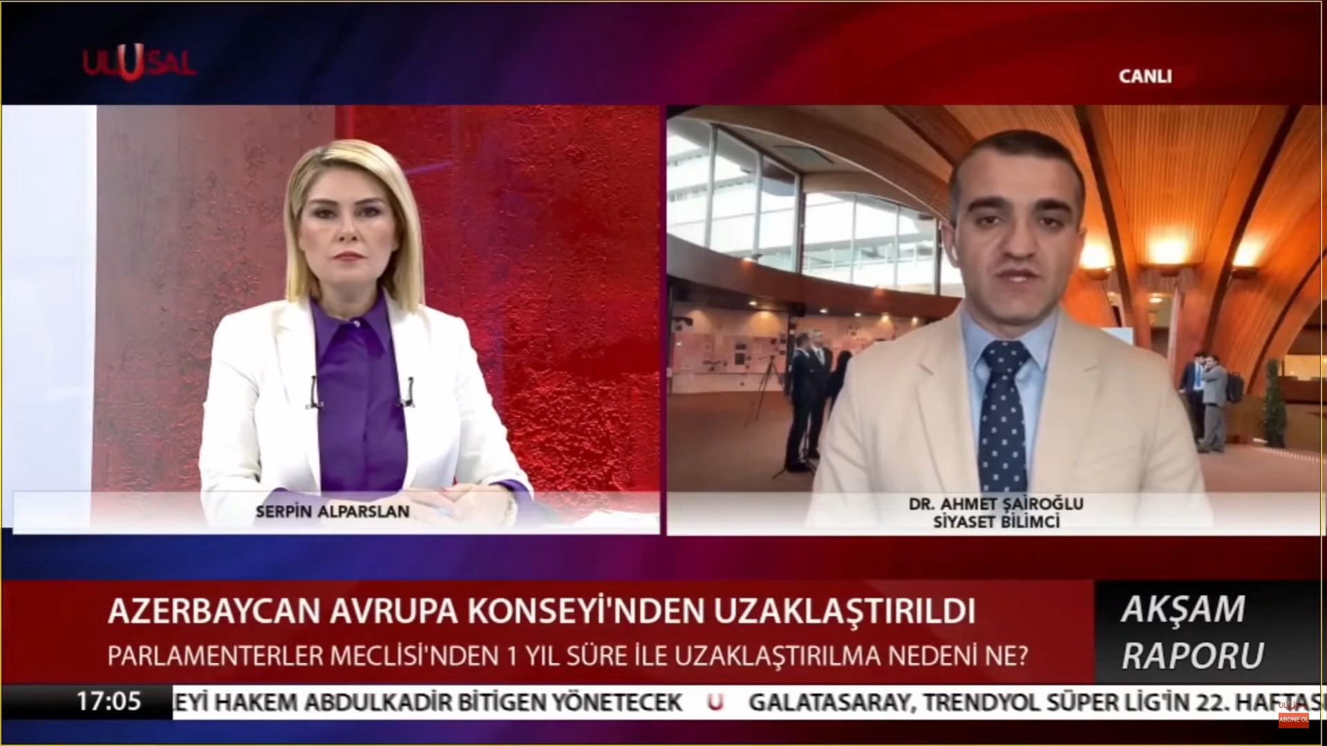 Dr. Ahmet Şairoğlu Strazburg’dan Ulusal Kanal`a konuştu – Azerbaycan Avrupa Konseyi’den uzaklaştırıldı