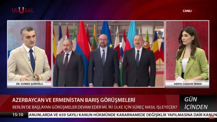Sunucu Derya Coşgun İmren’in sorularını yanıtlayan Dr. Ahmet Şairoğlu, Azerbaycan-Ermenistan barış görüşmeleri ve gündemdeki konulara ilişkin soruları yanıtladı.