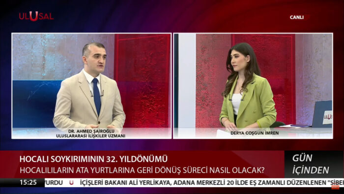 Uluslararası ilişkiler uzmanı, siyaset bilimci Dr. Ahmet Şairoğlu, Ulusal Kanal Televizyonu’nun “Gün İçinden” programına konuk oldu.