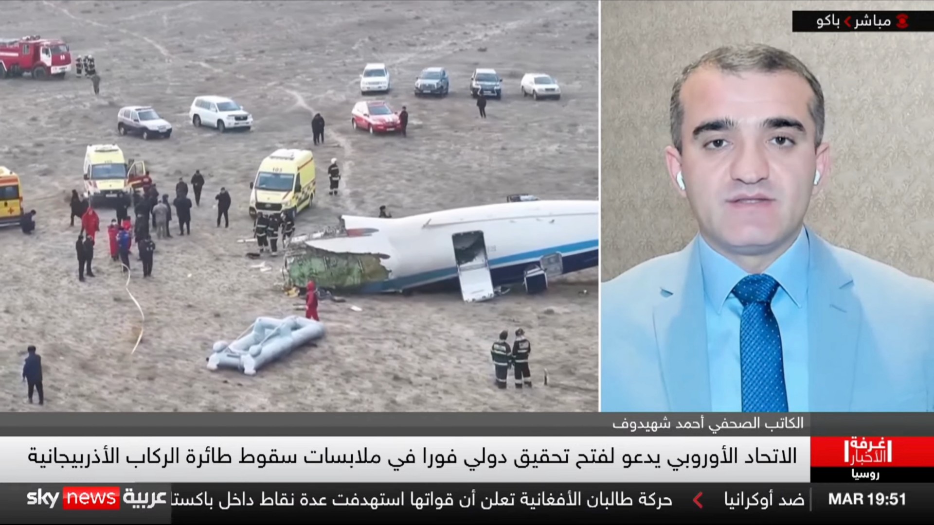 Konuyla ilgili Sky News Arabia kanalına konuşan siyaset bilimci Dr. Ahmet Şairoğlu, son 3 gündür Rus tarafının bu gerçeği doğrulama konusunda ciddi isteksiz olduğunu söyledi. Ancak Azerbaycan tarafının haklı talebi ve eldeki deliller sonucunda Rusya uçağın düşürüldüğünü kabul etmek zorunda kaldı. Bugün çeşitli ülkelerin katılımıyla uluslararası düzeyde araştırmalar yürütülmektedir. Yakın gelecekte sonuçlar açıklanacak ve Azerbaycan uçağının Rus Hava Savunma Sistemleri tarafından düşürüldüğü resmen doğrulanacak. Bundan sonra Rusya’nın gerçeği kabul etmesi ve Azerbaycan’a tazminat ödemesi gerekecektir.