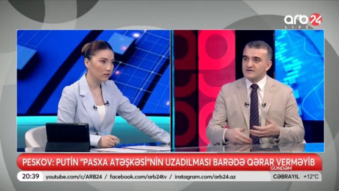 İşte bu konular 20 Nisan 2025 tarihinde ARB24 Televizyonu’nda yayınlanan “Gündem” programında ele alındı. Programın konuğu olan siyasal yorumcu Ahmet Şairoğlu, savaşın son aşamasını detaylı şekilde analiz ederek, cephede yaşanan gelişmeler, uluslararası ilişkilerdeki yansımalar ve olası barış perspektifleri hakkında bilgi verdi.