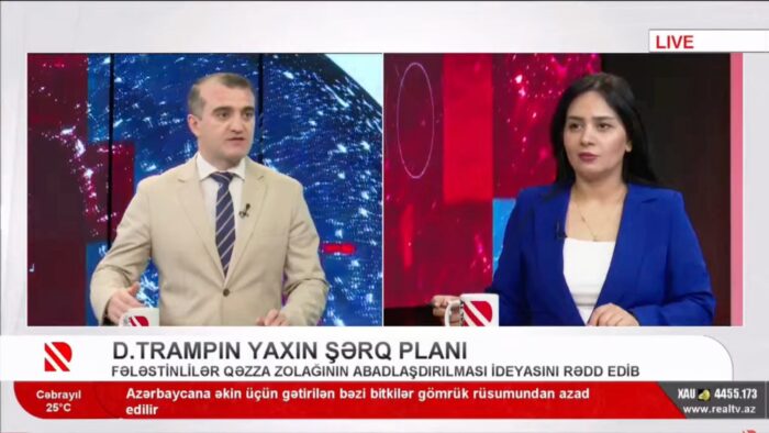 Konuyla ilgili olarak, Azerbaycan Demokrasi ve İnsan Hakları Enstitüsü Başkanı, insan hakları savunucusu Dr. Ahmet Şairoğlu, REAL Televizyonu’nun “Real İntervyu” programına konuk oldu. Dr. Ahmet Şairoğlu, Trump’ın bu planını uluslararası hukuk normlarına ve insan haklarına aykırı olarak nitelendirerek, böyle bir yaklaşımın bölgede insani bir felakete yol açabileceğini ifade etti.