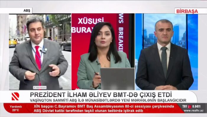 REAL Televizyonu’nun “Real İntervyu” programına konuşan siyaset yorumcusu Ahmet Şairoğlu, konuşmanın tarihi önemine dikkat çekti. Ona göre, Cumhurbaşkanı’nın BM kürsüsünden verdiği mesajlar Azerbaycan’ın uluslararası arenadaki konumunu güçlendirmekle birlikte, bölgede kalıcı barışın sağlanmasına da hizmet ediyor. “Cumhurbaşkanı İlham Aliyev bir kez daha gösterdi ki, Azerbaycan yalnızca savaş meydanında değil, diplomasi masasında da galiptir,” dedi.