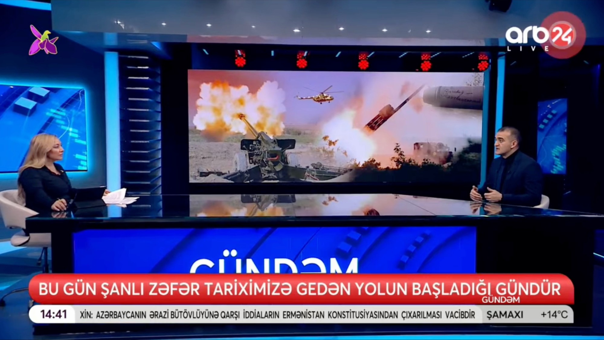 Bugün — 27 Eylül Anma Günü’nde ARB24 Televizyonu’nun “Gündem” programında Azerbaycan’ın 44 günlük İkinci Karabağ Savaşı sırasında gerçekleştirdiği askeri operasyonlar, diplomatik faaliyetler, dünya medyasında yapılan haklı tezli tanıtım çalışmaları ve savaş sonrası barış süreci geniş şekilde ele alındı. Programda ayrıca 8 Ağustos’ta Beyaz Saray’da düzenlenen barış zirvesi de gündeme geldi.