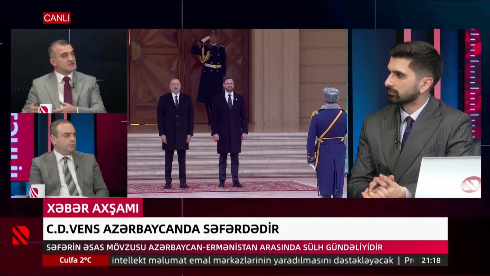 ABD Başkan Yardımcısı James Vance’in 9–10 Şubat tarihlerinde Ermenistan ve Azerbaycan’a gerçekleştirdiği ziyaret, REAL Televizyonu’nun Xəbər Axşamı programında kapsamlı şekilde ele alındı. Programa siyasi yorumcu Anar Aliyev ile insan hakları savunucusu Ahmet Şairoğlu konuk oldu. Yayında Vance’in önce Erivan’da Ermenistan Başbakanı Nikol Paşinyan, ardından Bakü’de Azerbaycan Cumhurbaşkanı İlham Aliyev ile yaptığı görüşmeler ve ABD’nin bölgede artan diplomatik faaliyeti masaya yatırıldı.
