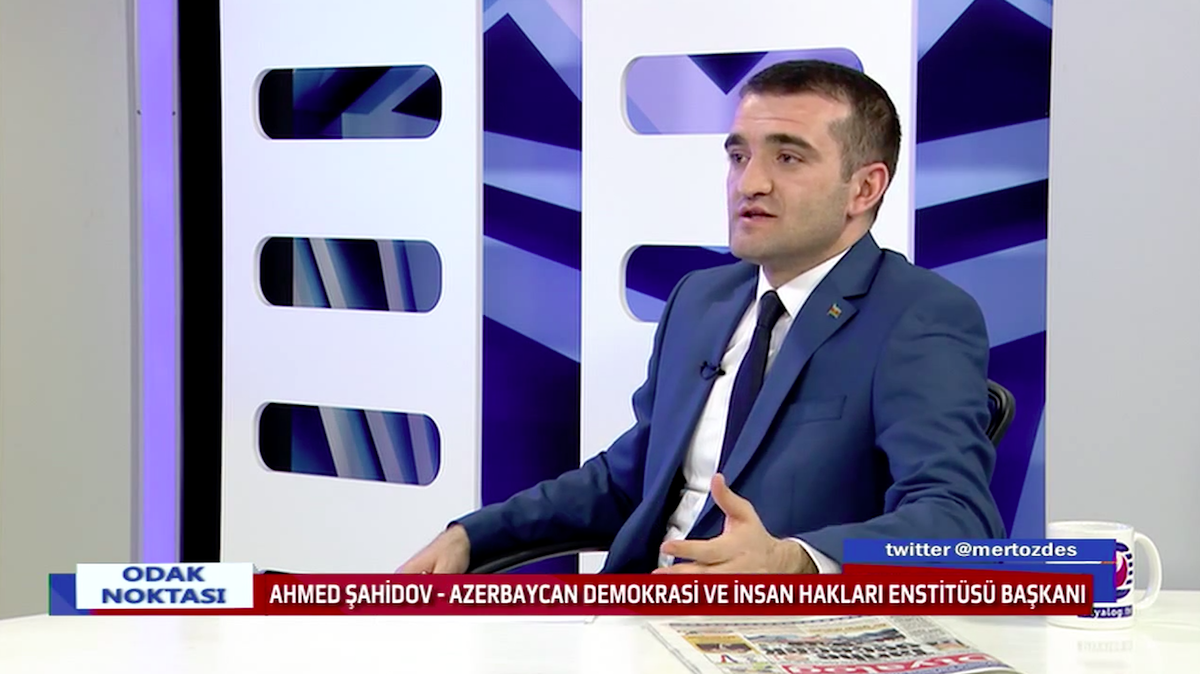Şimali Kipr Türk Cümhuriyyətində işgüzar səfərdə olan Azərbaycan Demokratiya və İnsan Haqları İnstitutunun rəhbəri Əhməd Şahidov Diyalog Televiziyasının qonağı olub. “Odak Noktası” verilişinin aparıcısı Mert Özdeşin suallarını cavablandıran hüquq müdafiəçisi Türkiyə-Rusiya münasibətləri və bunun Azərbaycana təsiri, dünyada yaşanan iqtisadi böhran və Qafqazda müharibə ocaqları barədə fikirlərini bölüşüb.
