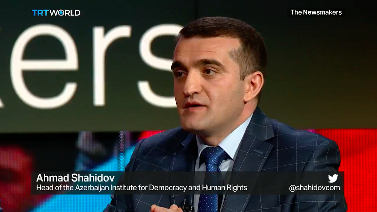 Türkiyədə işgüzar səfərdə olan Azərbaycan Demokratiya və İnsan Haqları İnstitutunun rəhbəri Əhməd Şahidov Fevral ayının 26-da TRT World kanalının canlı yayımında “Newsmakers” proqramında debatlara qatılıb. ABŞ-ın Azərbaycandakı keçmiş səfiri Metyu Brayza və erməni ekspert Riçard Qriqosyanın da qatıldığı debatda Xocalı soyqırımı və Dağlıq Qarabağ münaqişəsi müzakirə olunub.