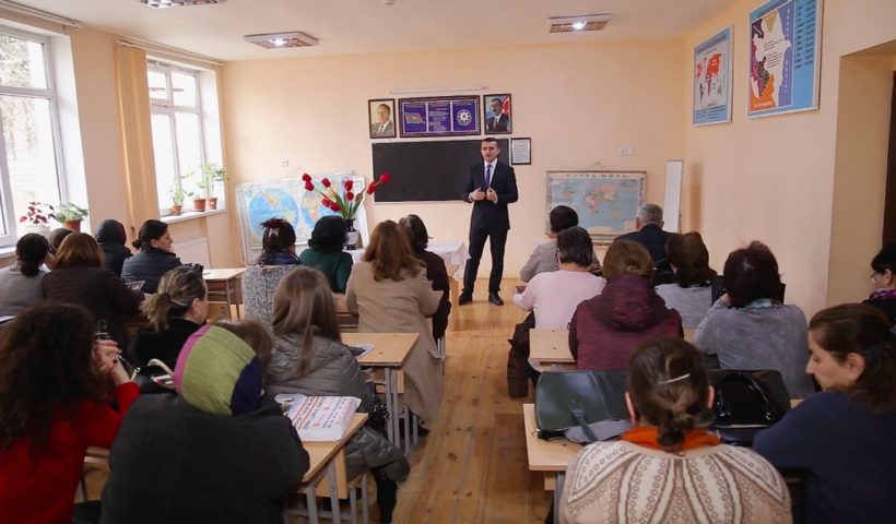 Əhməd Şahidov Qax şəhər 2 nömrəli məktəb-liseyin müəllim kollektivi qarşısında tarixi çıxış edib