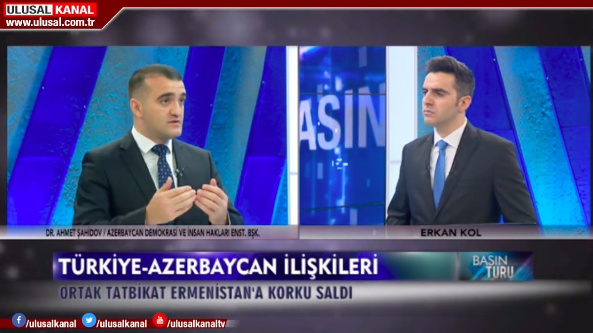 Azərbaycan-Türkiyə münasibətləri barədə danışan hüquq müdafiəçisi Əhməd Şahidov son aylar həyata keçirilən birgə hərbi təlimlər barədə söz açıb, Dağlıq Qarabağ münaqişəsi və Ermənistanın işğalçılıq siyasəti, beynəlxalq təşkilatlarda aparılan işlər və Türkiyənin xarici siyasətində müşahidə olunan yeniliklər barədə fikirlərini bölüşüb.
