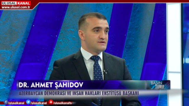 Türkiyədə işgüzar səfərdə olan Azərbaycan Demokratiya və İnsan Haqları İnstitutunun rəhbəri, hüquq müdafiəçisi Əhməd Şahidov Sentyabrın 1-də Türkiyənin “Ulusal Kanal” Televiziyasının “Basın Turu” verilişinin qonağı olub. Canlı yayında tanınmış aparıcı Erkan Kolun suallarını cavablandıran Əhməd Şahidov 1 Sentyabr tarixindən etibarən Türkiyə Cümhuriyyəti vətəndaşları üçün Azərbaycana gediş-gəliş vizasının ləğv edilməsi barədə danışıb və bundan sonra iki ölkə arasındakı münasibətlərin artan xətt üzrə inkişaf edəcəyini deyib.