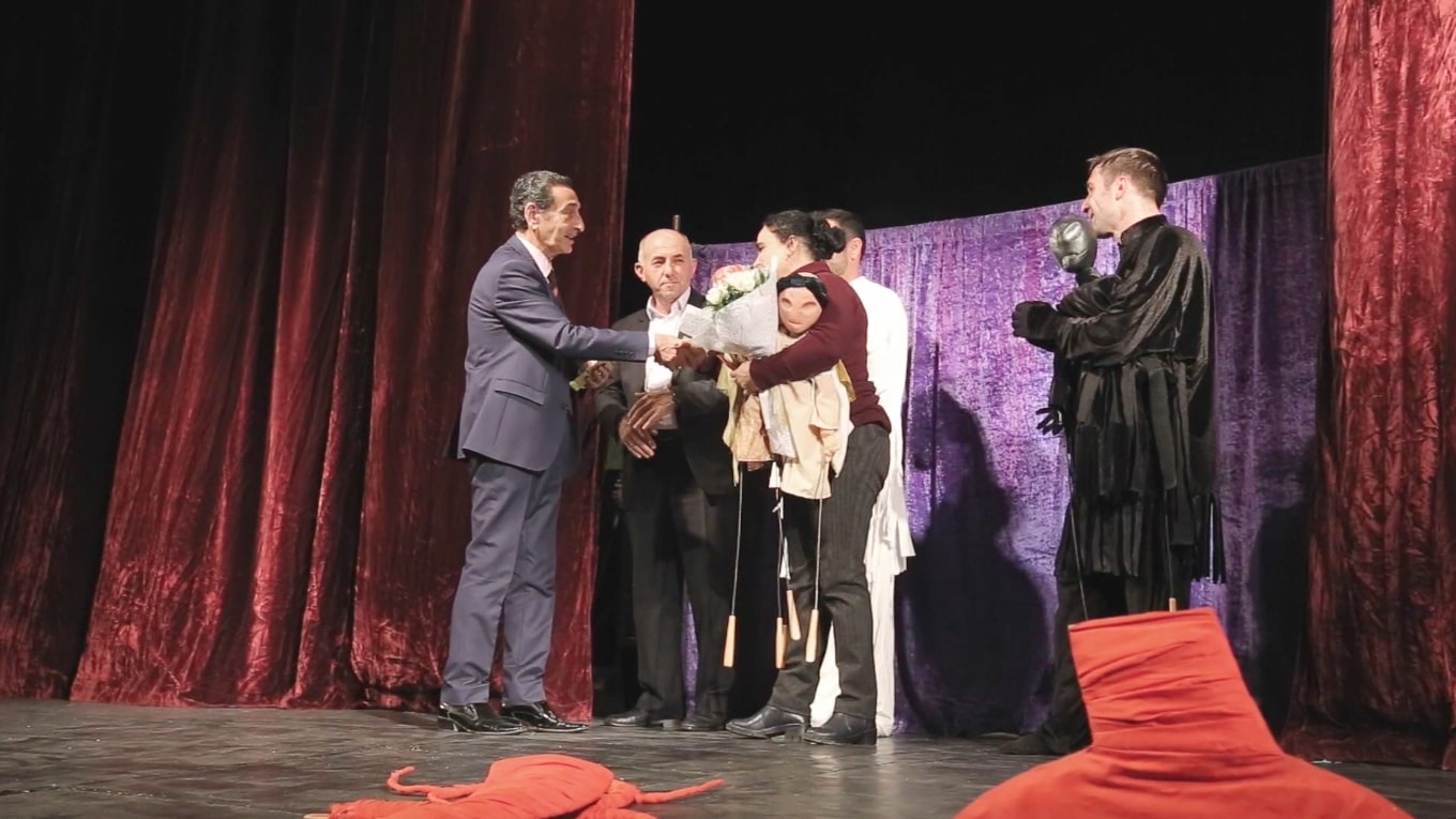 Teatrın rejissoru, Əməkdar artist Yusif Abdurahmanovun quruluş verdiyi tamaşada əsas rolları Orxan Əminov, Nuru Mustafayev, Araz Mehrablı və Azər Kərimov ifa edib. Tamaşanın rəssamı Mayis Abdullayevdir.