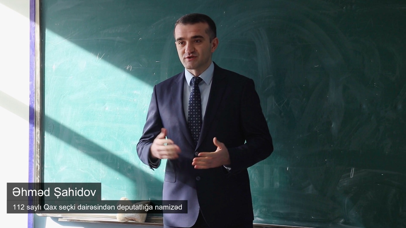 112 saylı Qax seçki dairəsindən deputatlığa namizəd, tanınmış hüquq müdafiəçisi Əhməd Şahidov Qax şəhəri Namiq Allahverdiyev adına 2 nömrəli məktəb-liseyin müəllim kollektivi ilə görüşüb. Səmimi ab-havada keçən görüş zamanı Qax müəllimlərini düşündürən məsələlər ətrafında fikir və düşüncələrini bölüşən Əhməd Şahidov seçkilərdə qələbə qazanacağı təqdirdə növbəti 5 ildə Qax rayonu ilə bağlı plan və niyyətlərini bölüşüb.